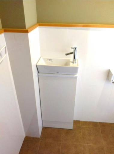 便器はTOTOの最新モデル「GG」。そして、使いやすい高さの「独立手洗器(コンフォートシリーズ)」を設置しました。