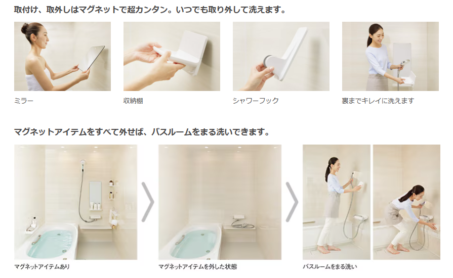 棚・ミラー・洗面器まで、マグネットで壁に引っ付けるを採用される方が多くなりました