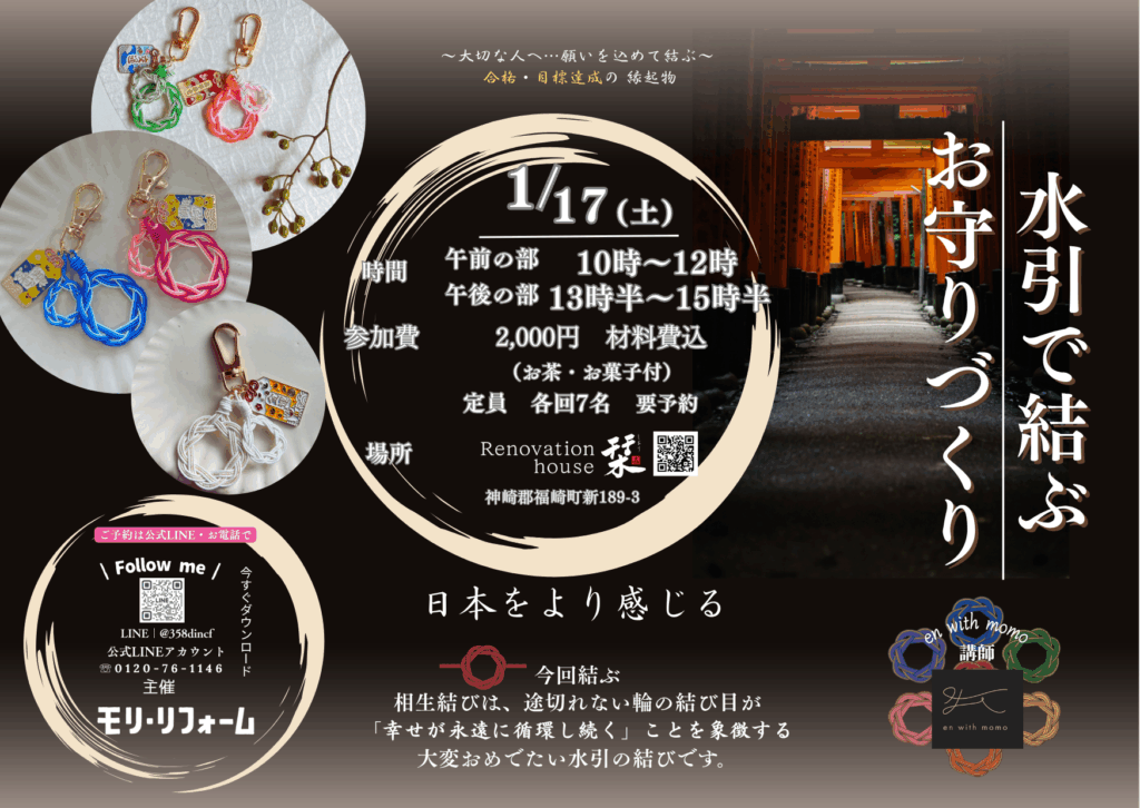 ご家族やご友人、そしてご自身の合格や目標達成を祈願して、一つひとつ心を込めて結んでいきましょう。手作りの世界に一つだけのお守りは、きっと贈る相手に大きな力と喜びを届けます。