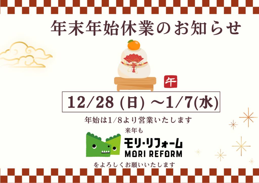 いつもモリリフォームをご愛顧いただき、誠にありがとうございます。 早いもので、今年も残すところあとわずかとなりました。