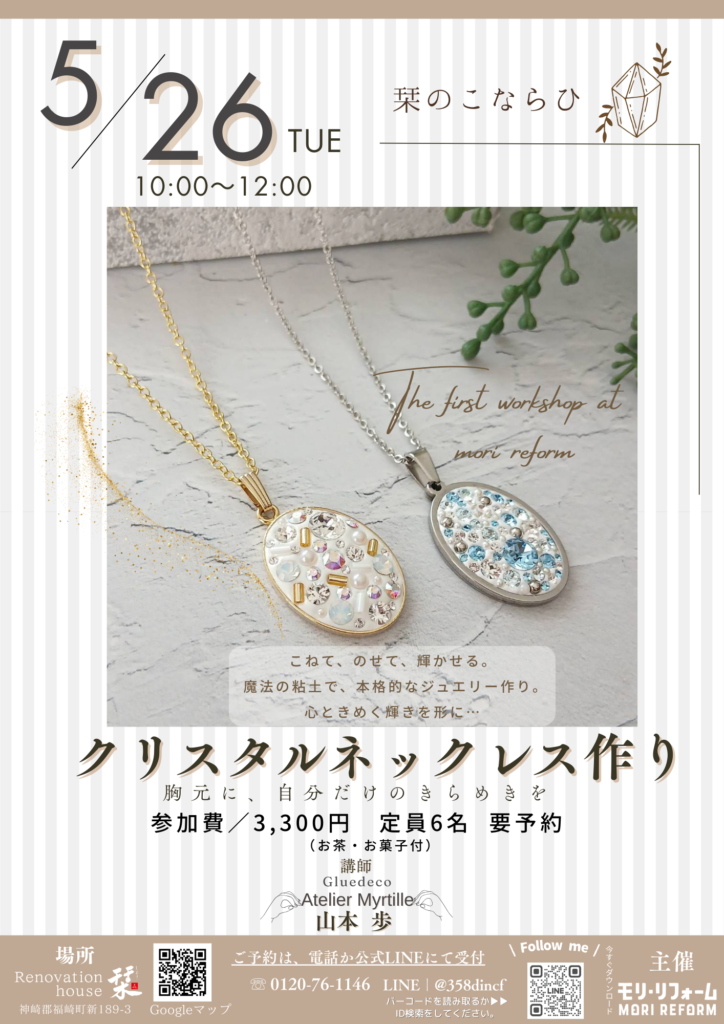 【5月26日㈫】「クリスタルネックレス作り」心ときめく輝きを形に。