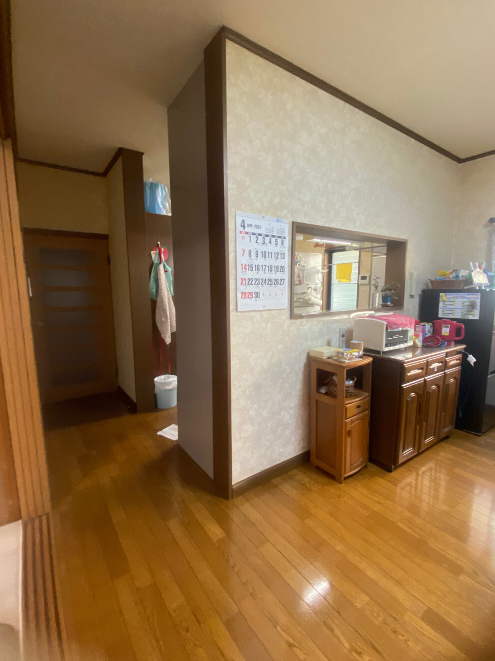 少しずつ少しずつ壁の巾木が膨らむ等の影響が出てきていたキッチン。